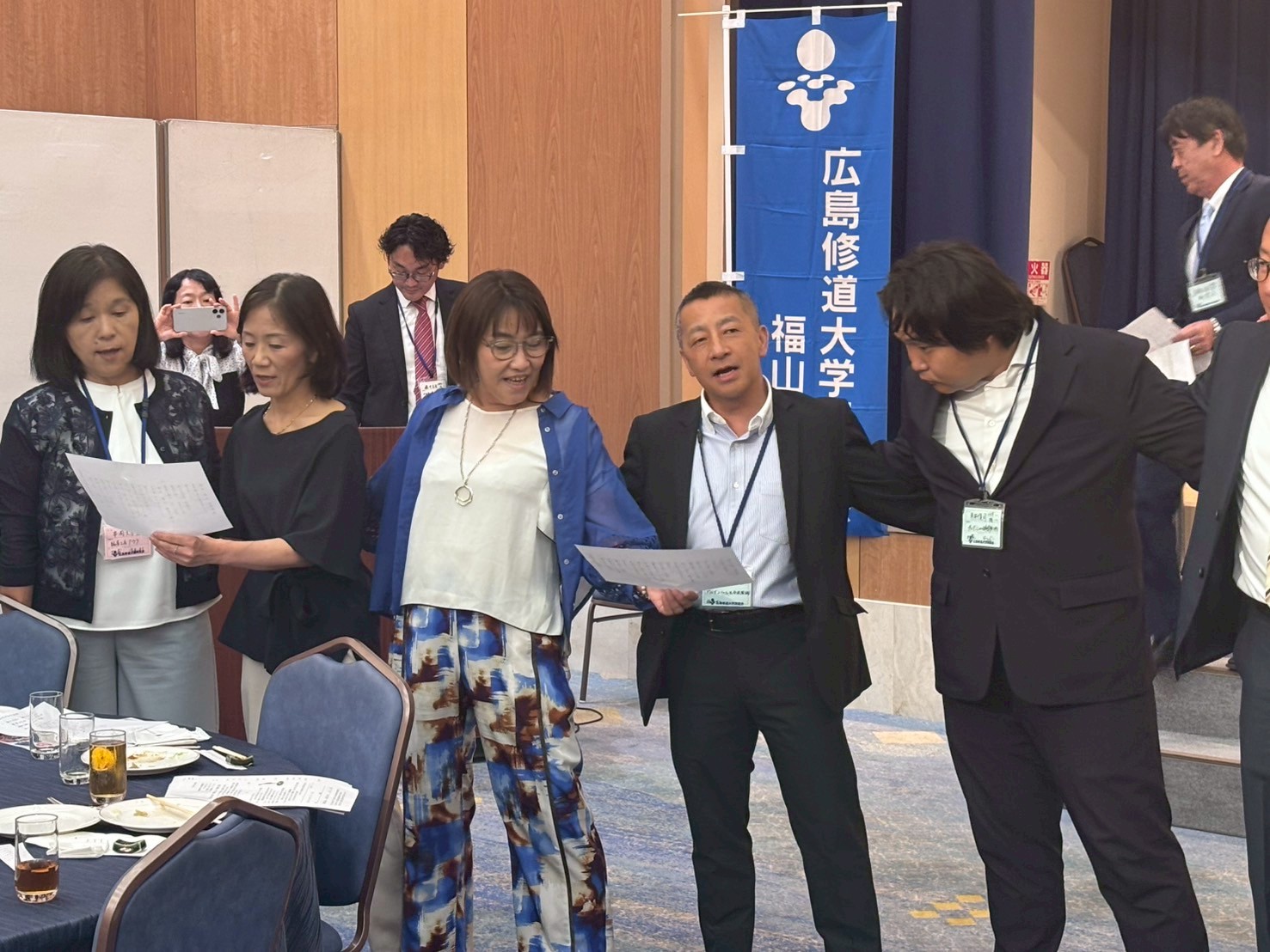 最後は、石井幹事・原幹事両名の気合の入った掛け声のもと全員で一つの大きな輪を作り修大学生歌を大合唱して締めました。