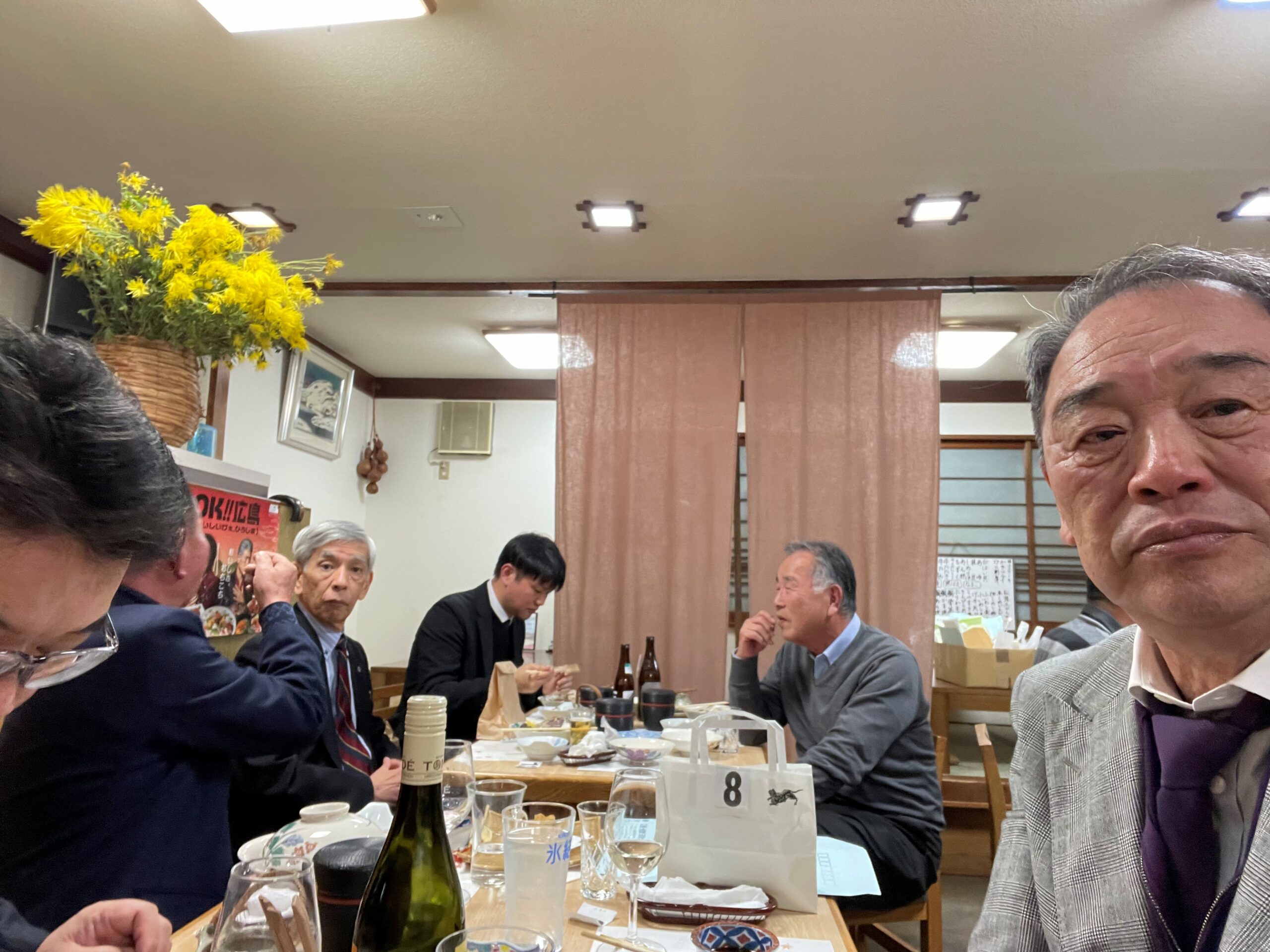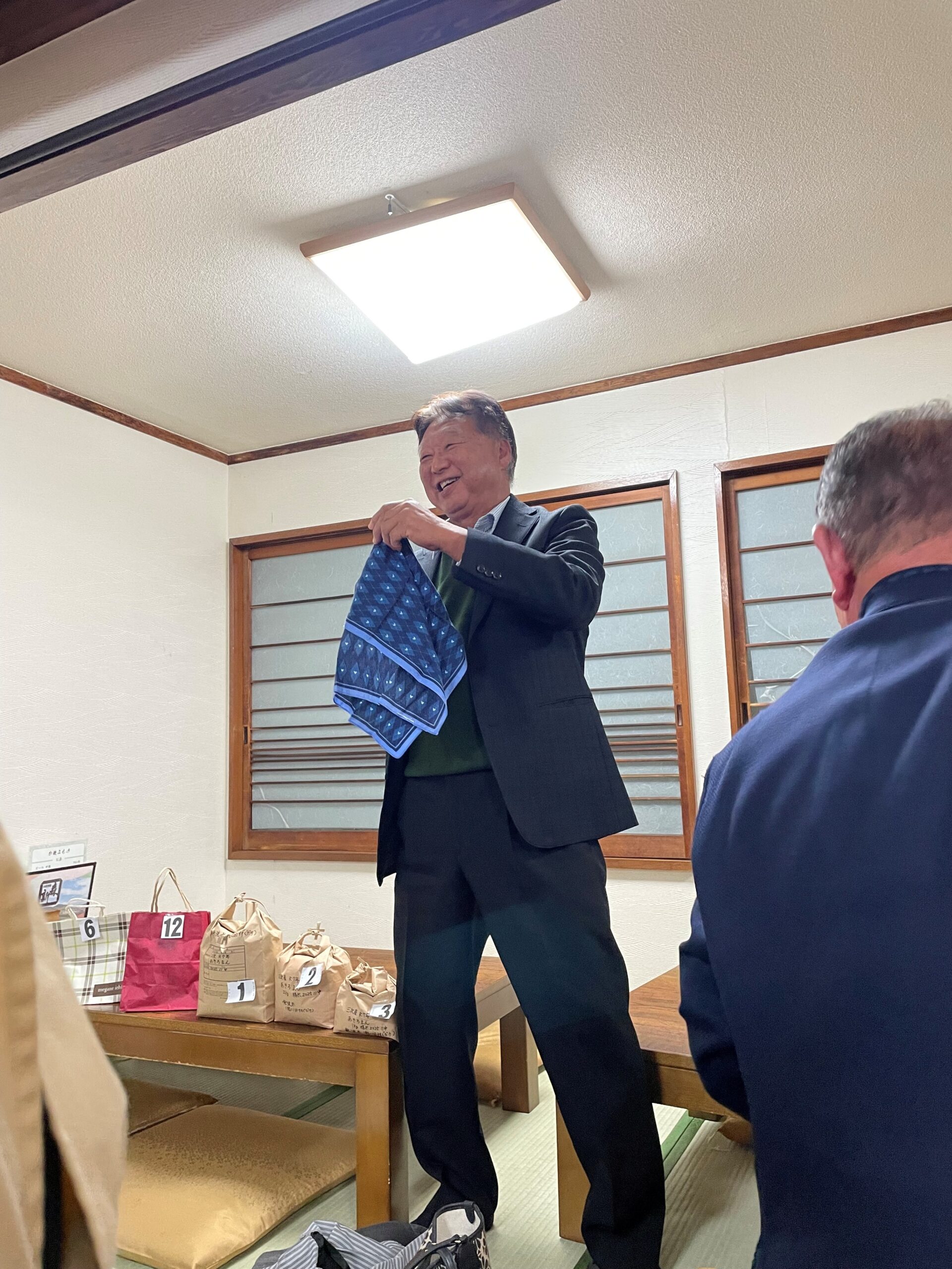 飛び入りでの手品の披露で盛り上がった後、福永会長より提供されたお米や銀杏他全員に当たるプレゼントの抽選会でさらに盛り上がり、最後は全員で学生歌を歌いお開きとなりました。
